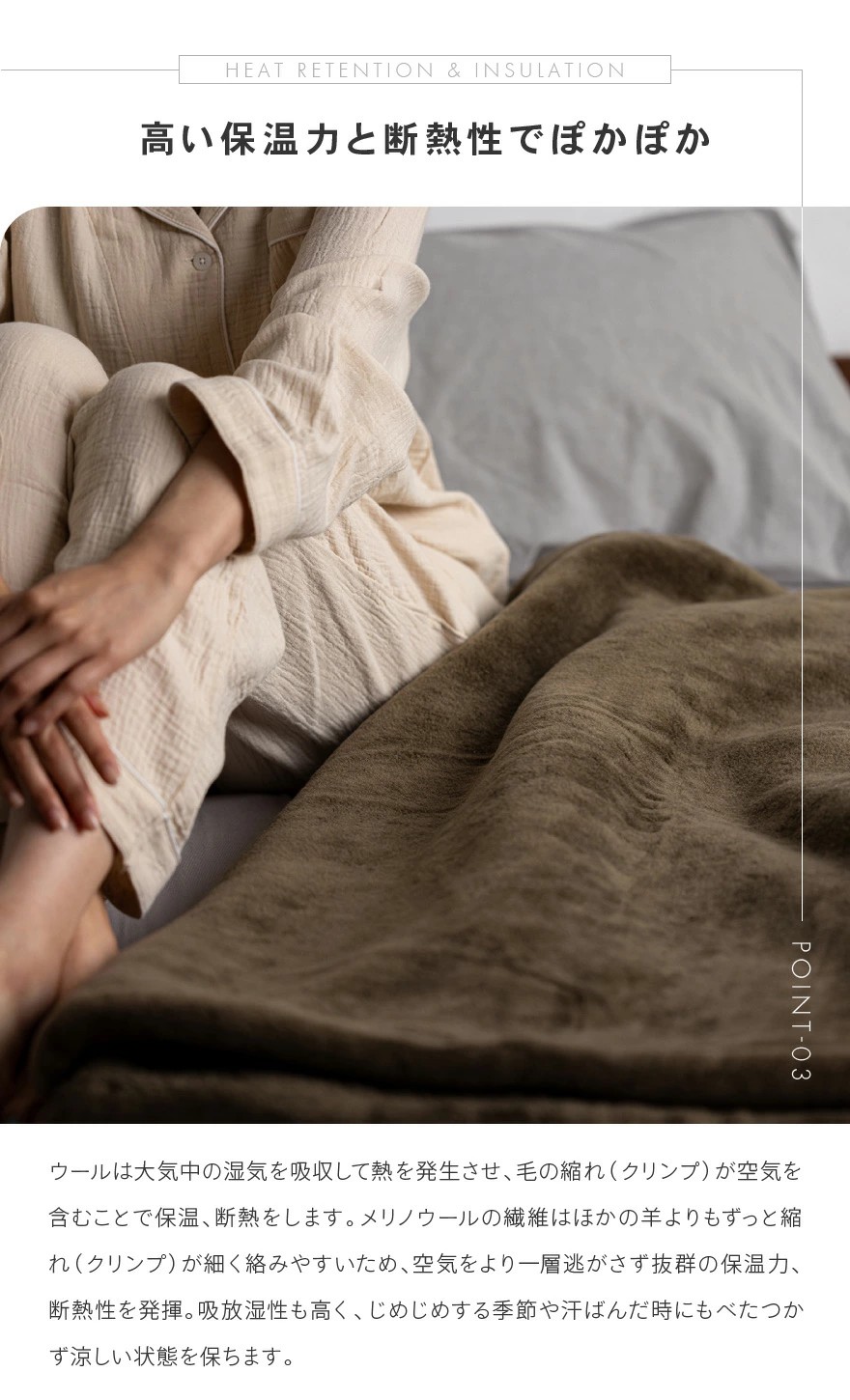 メリノウールとは羊毛の中でも最高級となっており、その中でも毛布にぴったりな